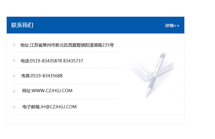 地址:常州市新北區友邦商務大廈1幢16、17層  電話:0519-85101652  傳真:0519-85112595  郵編:213022  網址:www_cz-jiayue_cn.chachelh.com  郵箱:xiajifengaa@163.com